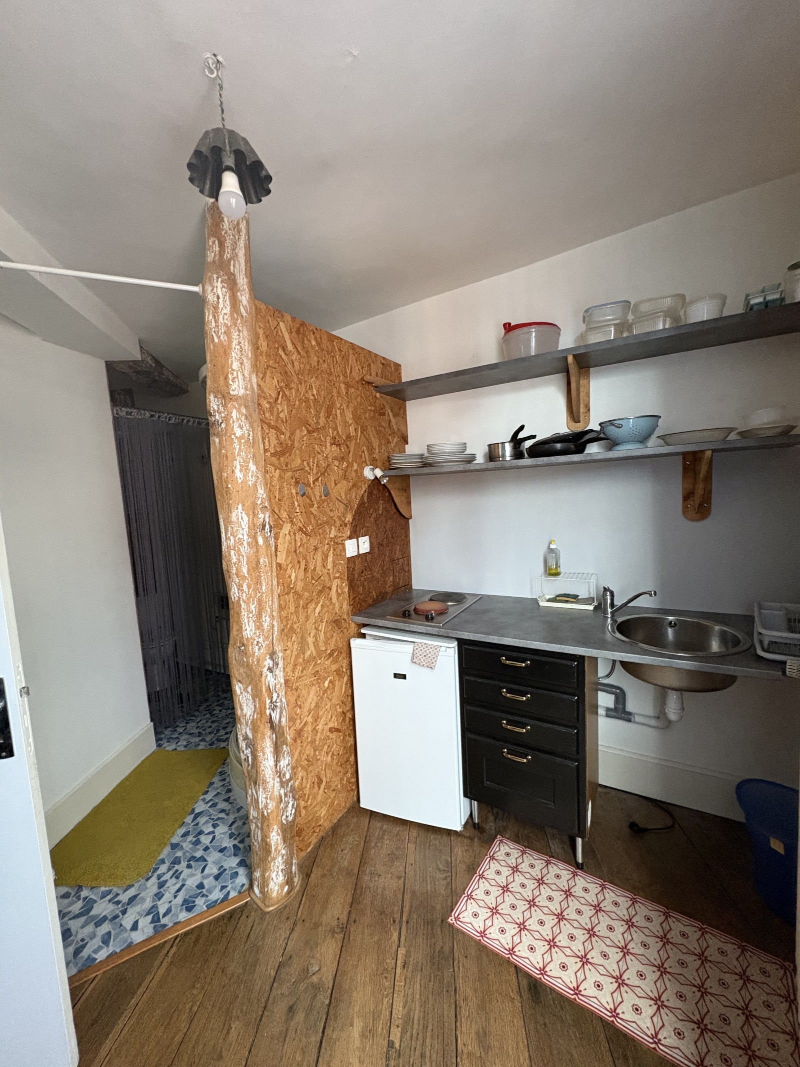 Cet appartement dispose d'une pièce principale, d'une kitchenette équipée avec une salle d'eau avec WC.