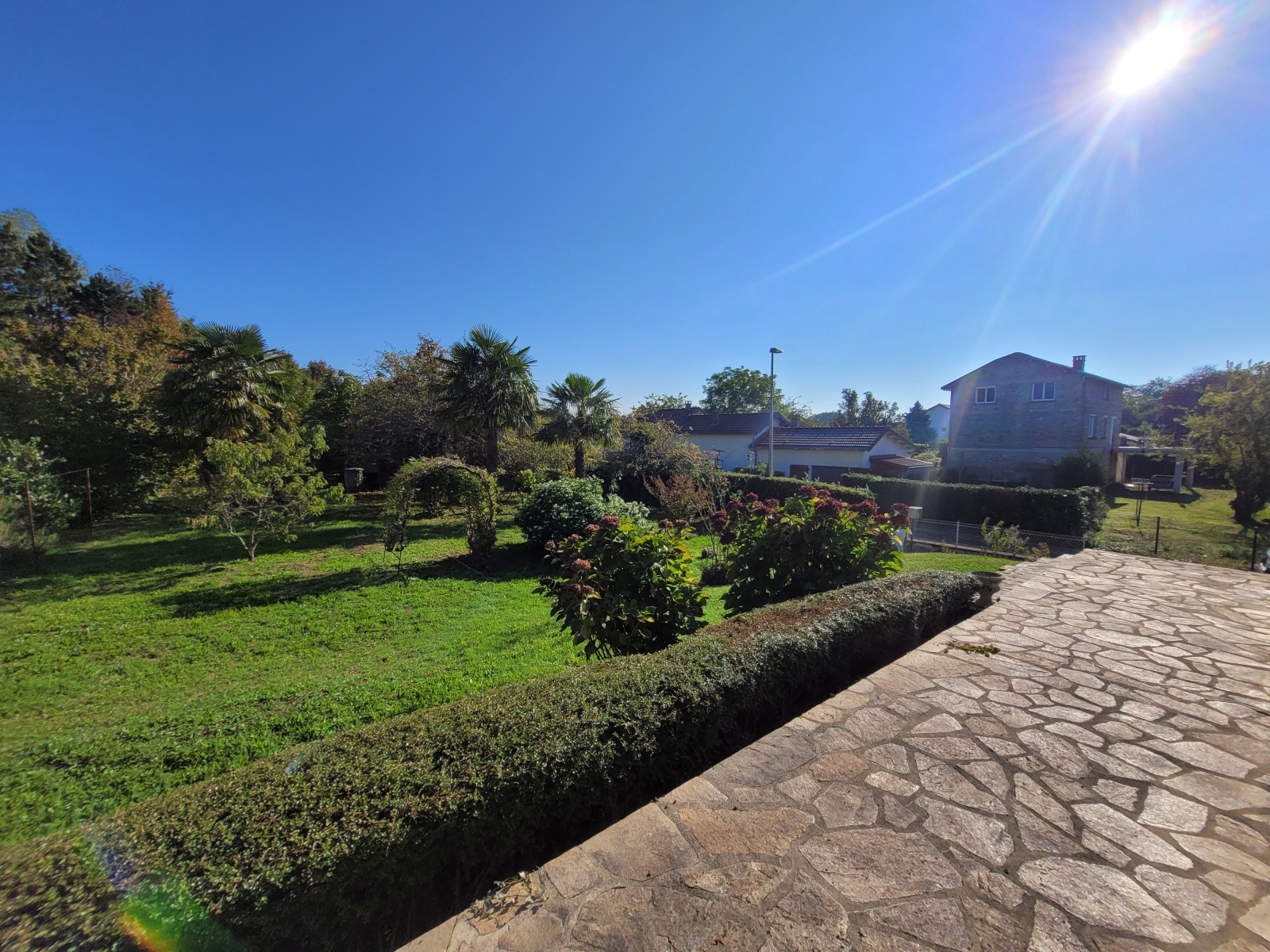 - Un beau jardin arboré avec vaste terrasse et petite dépendance (terrain de 1 440 m²).