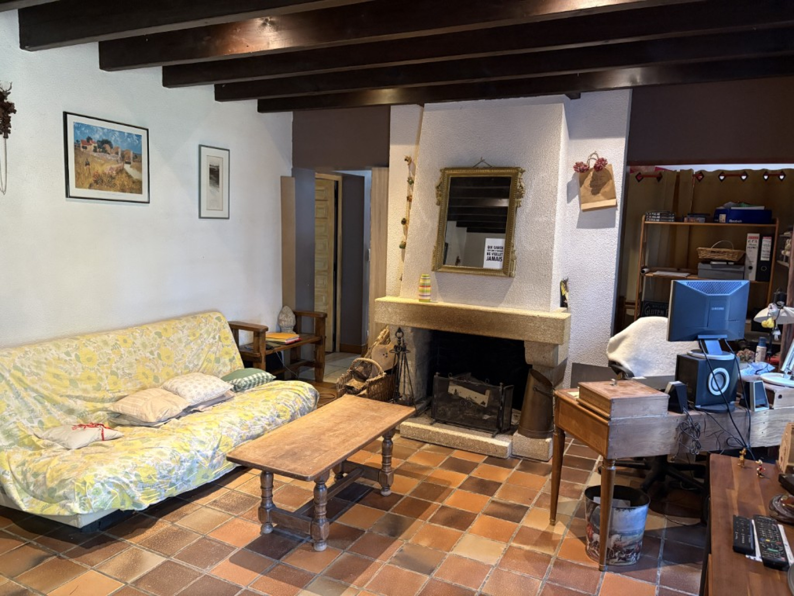 La maison est composée de 4 chambres, d'un séjour avec cheminée, d'un salon, de deux salles d'eau, d'une cuisine et d'un sous-sol.